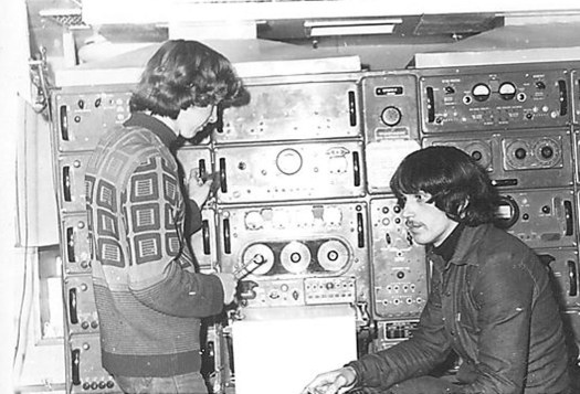 Аэрологи в радиолокационной станции НИСП «Виктор Бугаев» (1977 г., Канада — Бермудский Треугольник). РЛС осуществляет прием сигналов с радиозондов и метеоракетМой второй «любимый пароход»: научно-исследовательское судно погоды (НИСП) «Муссон» (кстати, на «Пассате» пришлось работать матросом второго класса).
