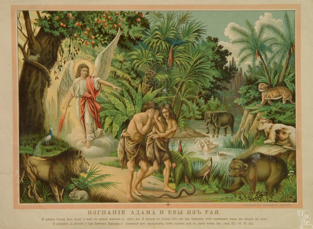Вспоминаем наших прародителей, которые преступили единственную заповедь, за что были наказаны. Изменилась природа человека, Бог облек нас в кожаные одежды; человек стал зависимым от своего тела. Изменилась природа земная. Восстали звери, животные на человека за его предательство… И в итоге: Господь выгнал людей из райского сада. Чему же радуются нонче люди, говоря, что самое главное в жизни – жизнь. Выходят на улицы пьяные и косые, крича и потешаясь?! Те ли это потомки Адама и Евы, которые были с позором выгнаны от Бога?! И их цветущий сад был закрыт, и при входе стоял ангел Господень с огненным мечом!
