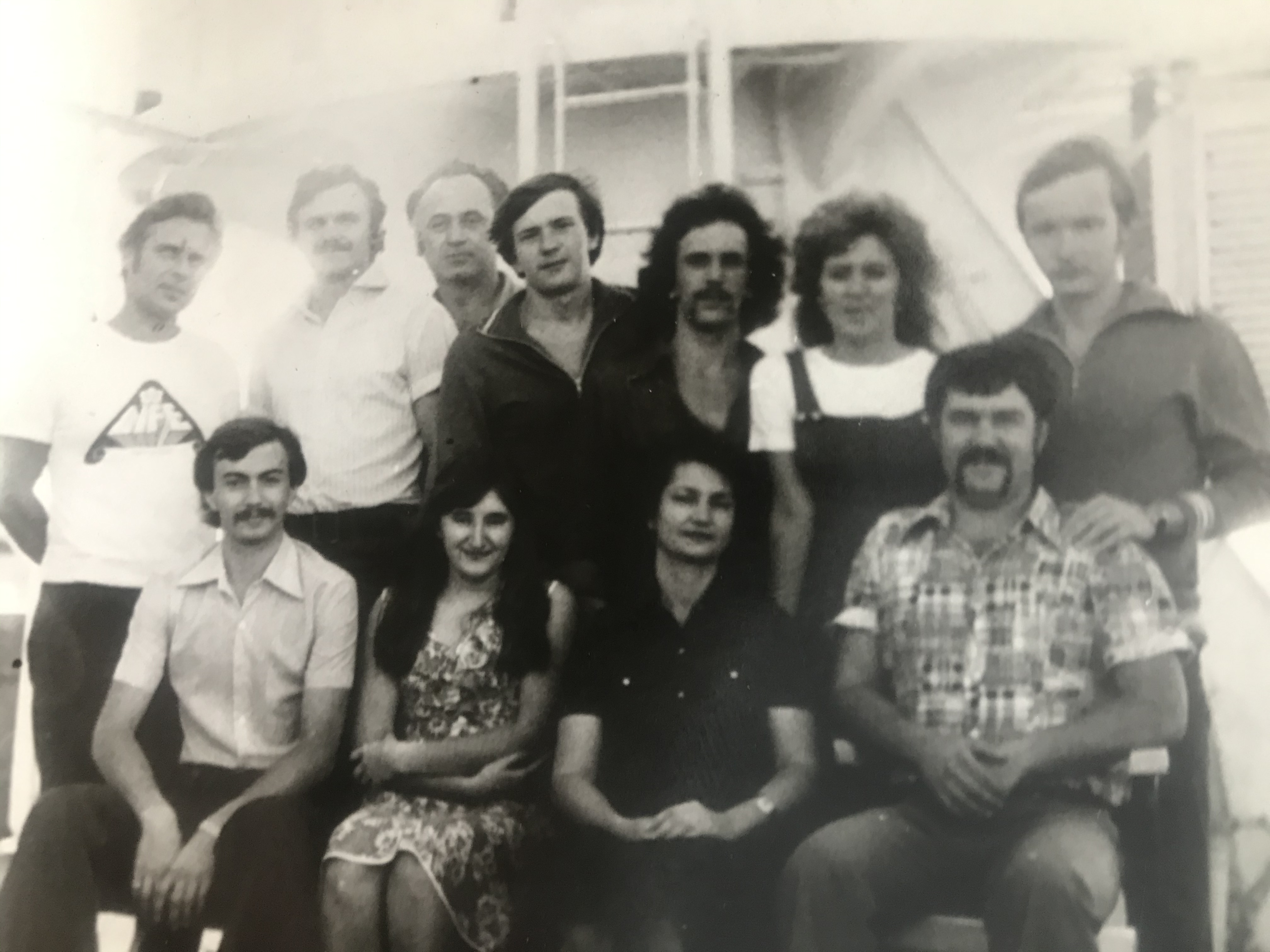 На этой фотографии, сделанной в Северном море у берегов Дании (по всей вероятности, ибо мы вышли из Роттердама и курс был на Клайпеду) наш аэрологический отряд с начальником экспедиции НИСП «Муссон» (май 1980 г.).